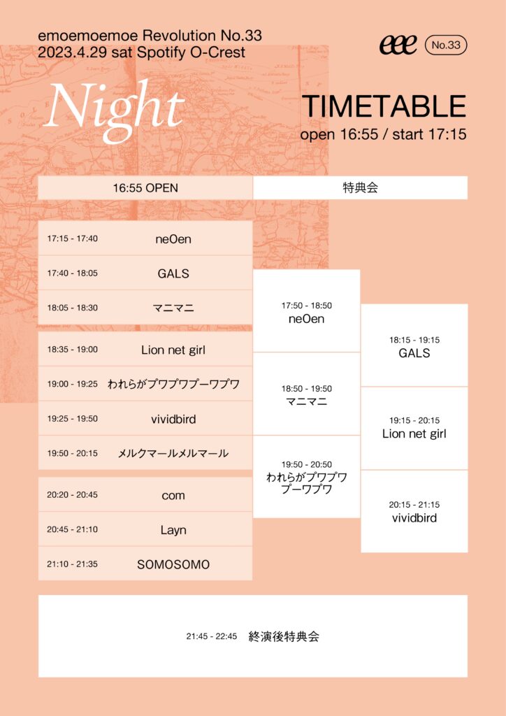 4/29 (土)『emoemoemoe』Revolution No.33 出演情報