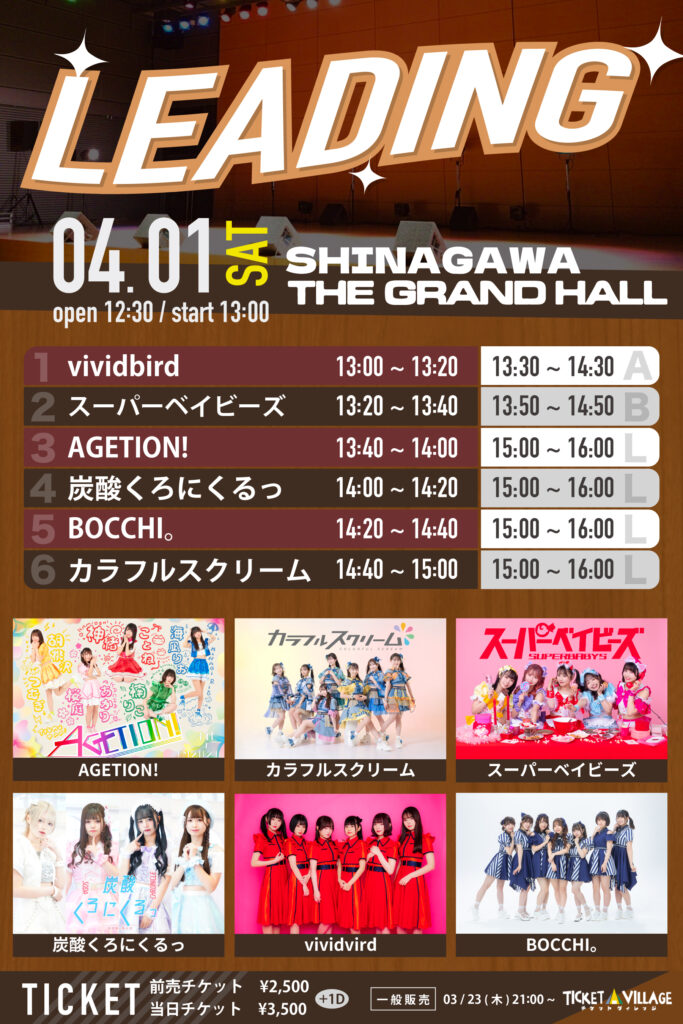 4/1(土)|LEADING出演決定【タイムテーブル解禁】 2023年3月23日2023年3月30日 出演情報 出演情報 出演情報:LEADING 日程:4/01(土) 会場:品川 THE GRAND HALL 時間:OPEN 12:30 / START 13:00 TICKET 前売2,500円 +1D https://ticketvillage.jp/events/12166 先行販売 2023/3/23(木)21:00〜 タイムテーブル URL Copied!
